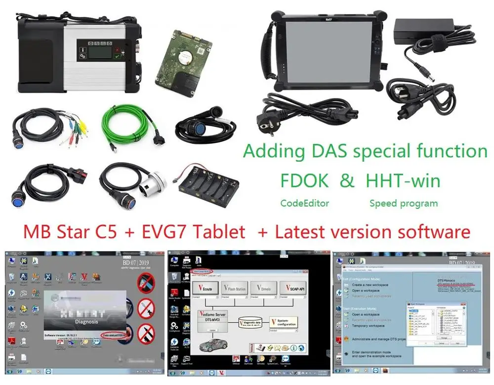 HOT Sale High Quality MB STAR C5 Wifi Diagnostic Interface New EVG7 Tablet V2019.12 MB Star SD Connect C5 So